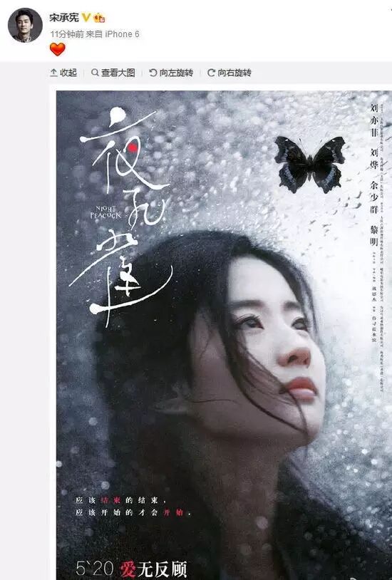 今天凌晨,宋承宪在微博晒出刘亦菲主演电影的海报,并发了一个爱心的表情!可今天一早大家看到的新闻却是,宋承宪刘亦菲分手!圈姐表示,一脸懵逼!