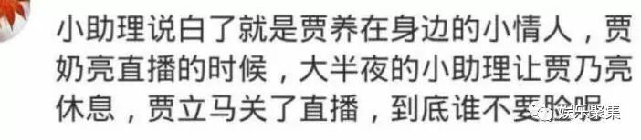 甚至还有人爆料:小助理就是贾养在身边的小情人。(先声明,小编是不相信贾乃亮是这样的人,至于消息真假,请自行判断),贾乃亮直播的时候,大半夜的小助理让贾乃亮休息。