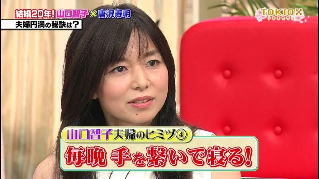 2015年山口智子在上综艺『TOKIOカケル』时被太一提问:“你俩保持夫妻关系的秘诀是什么呢?”山口智子立即回答: