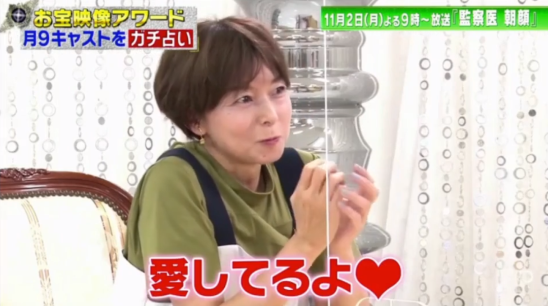 在去年10月播放的『FNSドラマ対抗 お宝映像アワード』节目中,山口智子参与了占卜的环节。当占卜师说「在唐泽寿明耳边说话,他抵御力很弱」时,山口智子自曝:“我今天早上也对他耳边说悄悄话了哦。”占卜师问说了啥,山口回答: