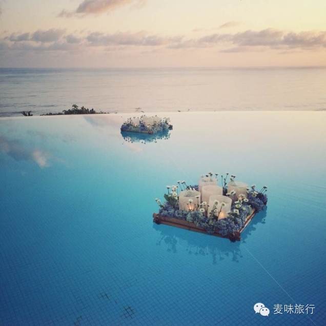 巴厘岛——名副其实的结婚和蜜月圣地,这次伊咪在众多婚礼场地中最终选择的卡玛别墅进行悬崖水上婚礼。在水天一色间定格了她和新郎最神圣和幸福的时刻。卡玛别墅群坐拥宝格丽同一片的悬崖海景,同时拥有巴厘岛最美丽的白沙滩。共有54栋泳池别墅组成,也是很多明星婚礼蜜月的理想场所。