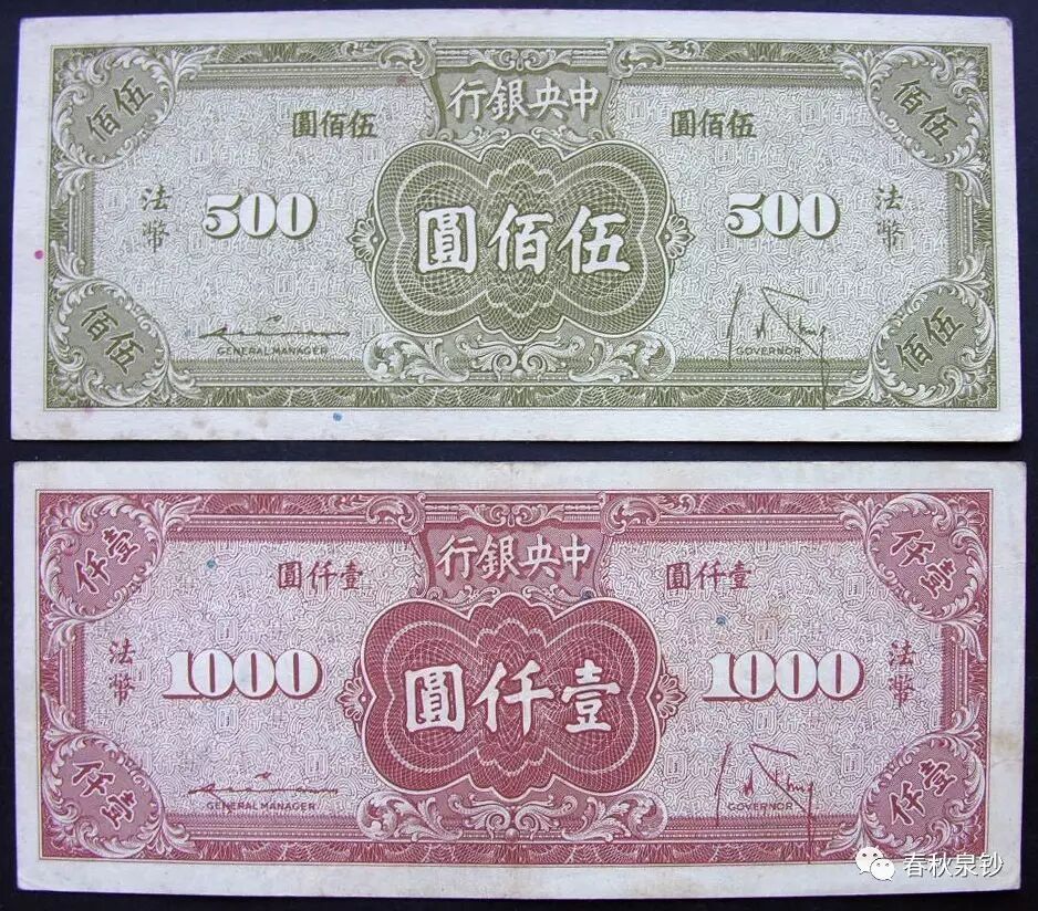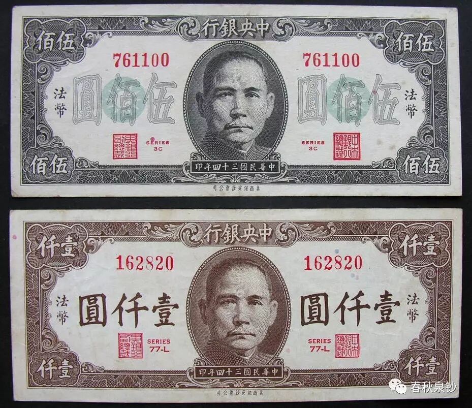 Lot10:中央银行法币党徽伍佰圆1枚,壹仟圆1枚,美商版