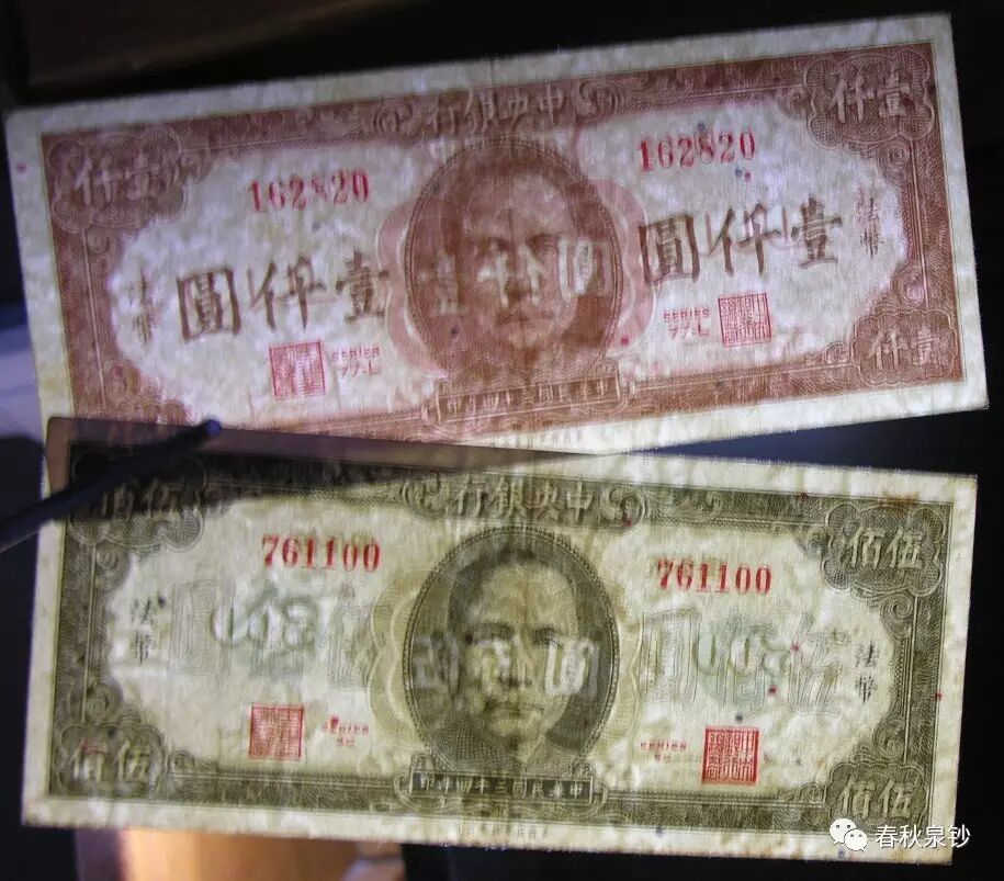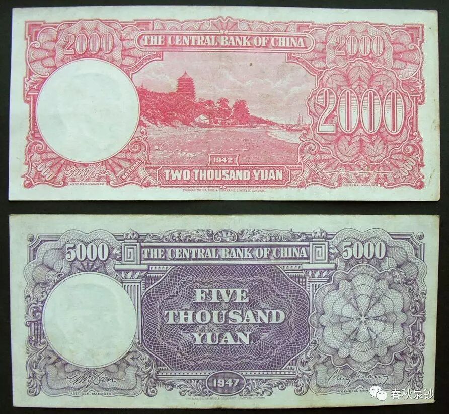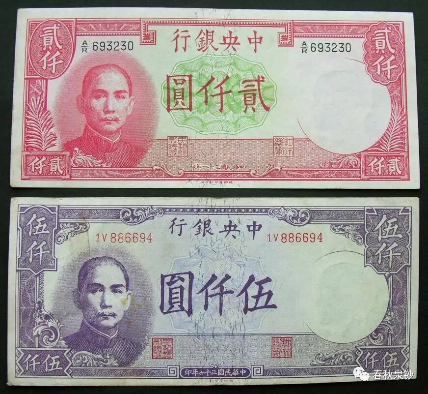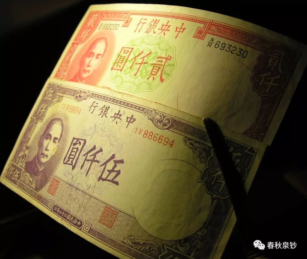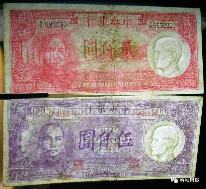 备注:水印清晰。贰仟圆右侧微黄,直板;伍仟圆发黄,品弱