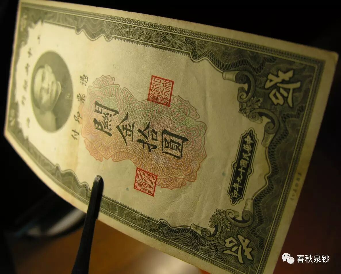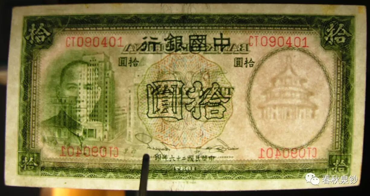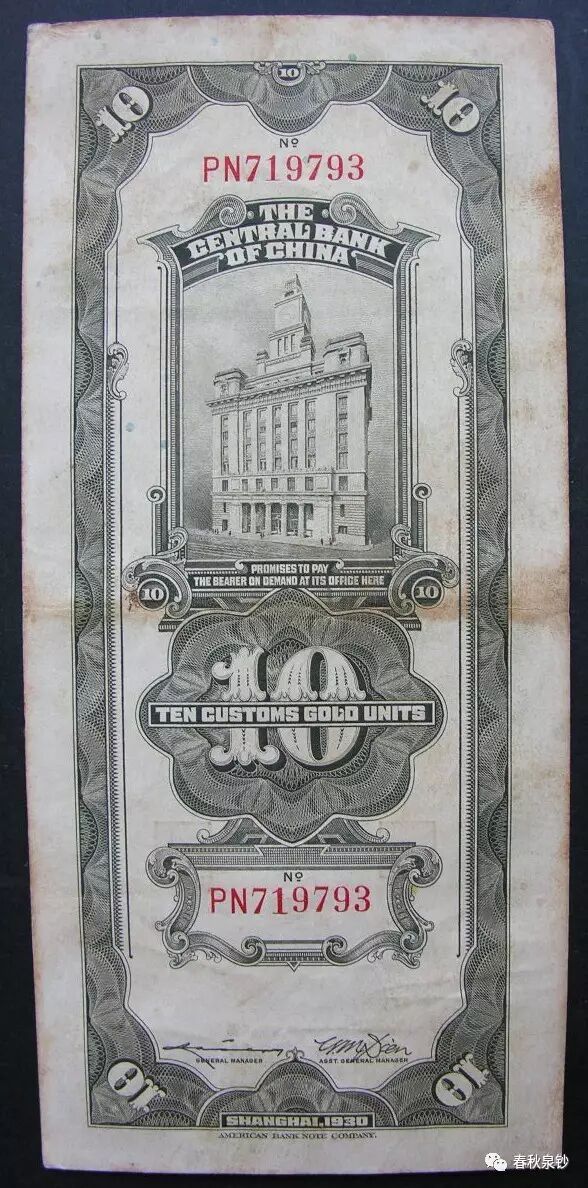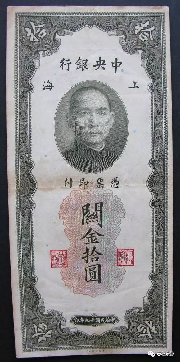 Lot1:民国十九年中央银行关金拾圆1枚,美钞版