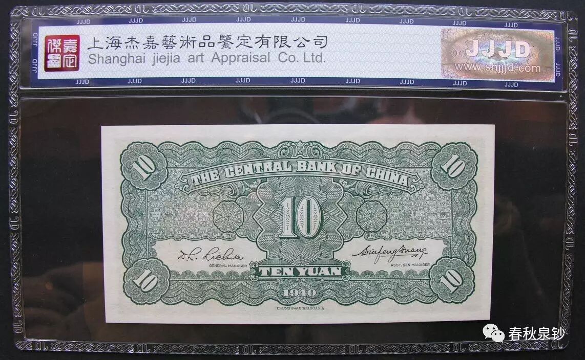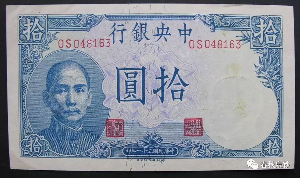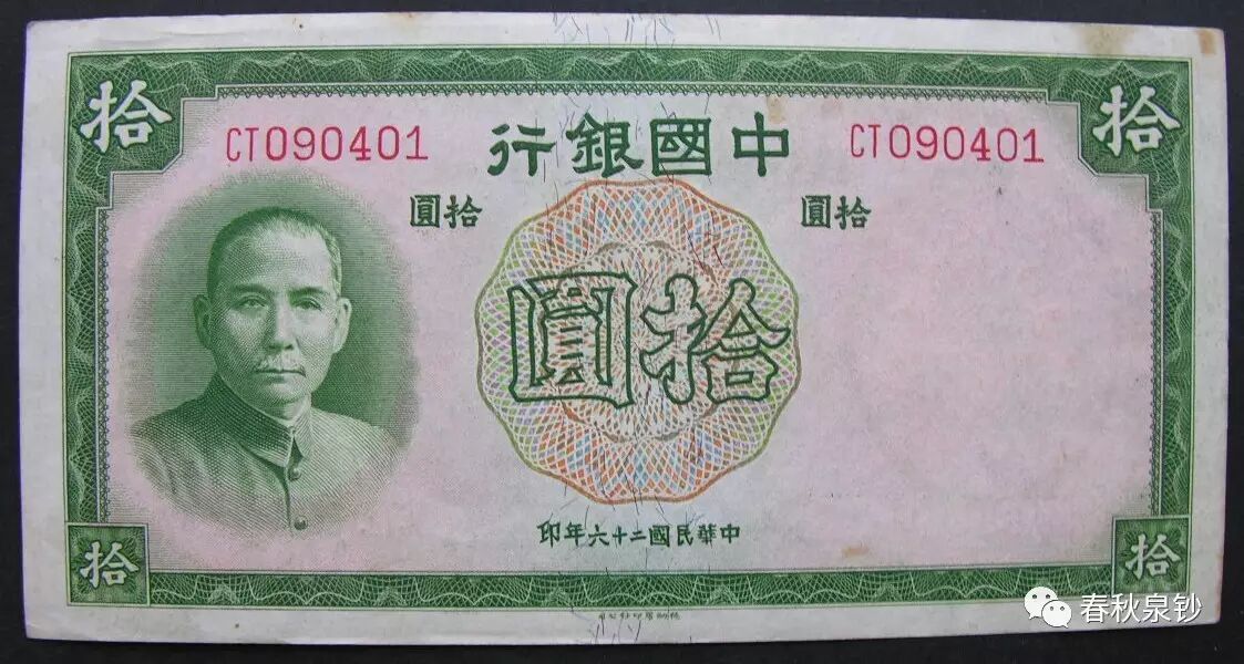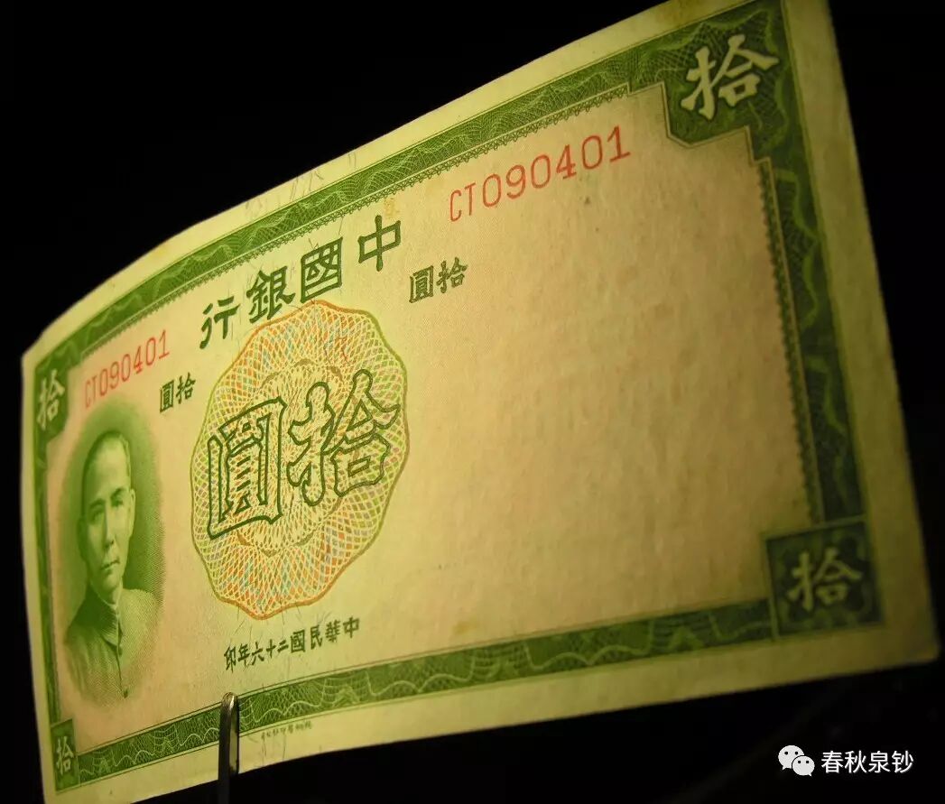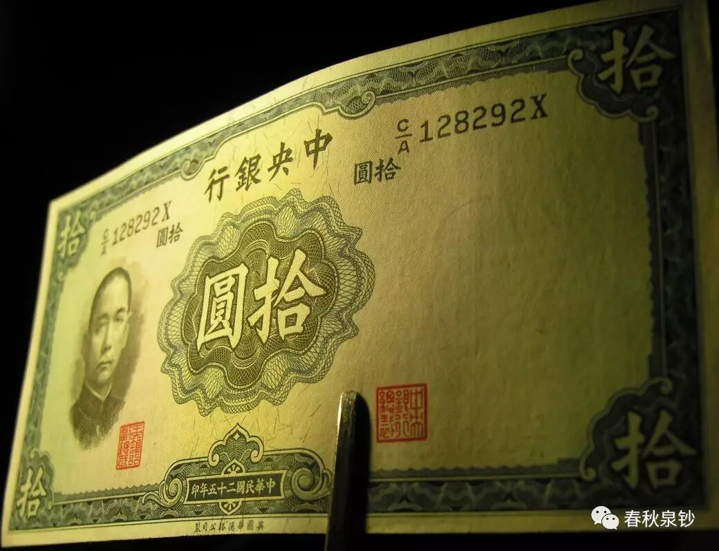 Lot1:民国十九年中央银行关金拾圆1枚,美钞版