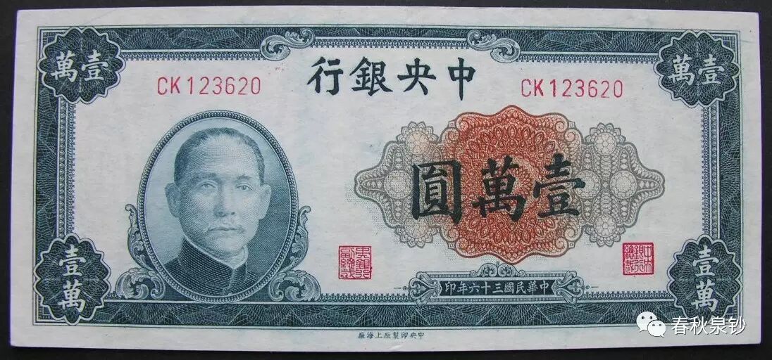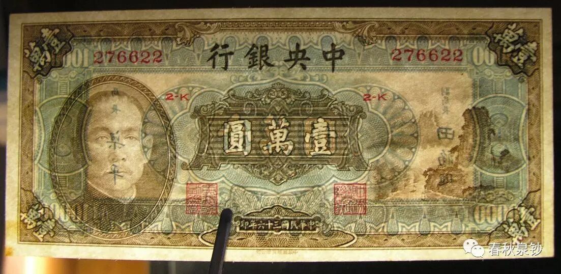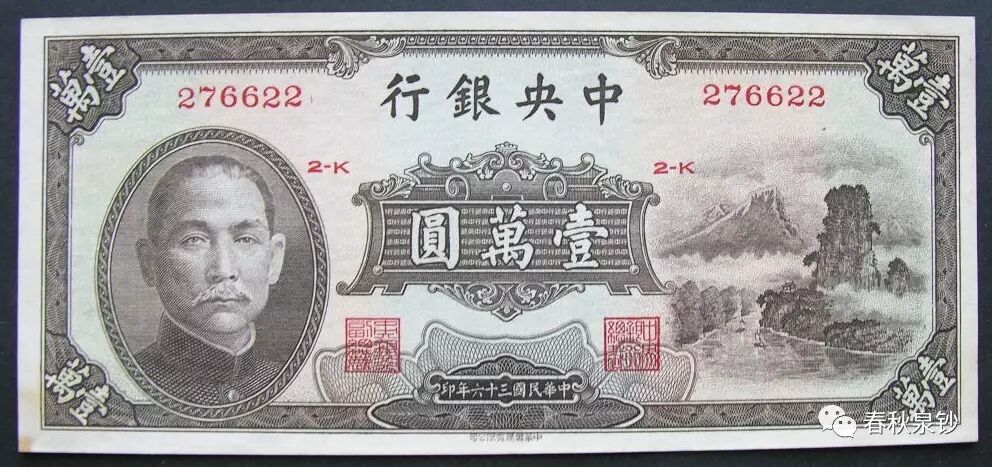 Lot12:中央银行壹萬圆1枚,小山水,书局版