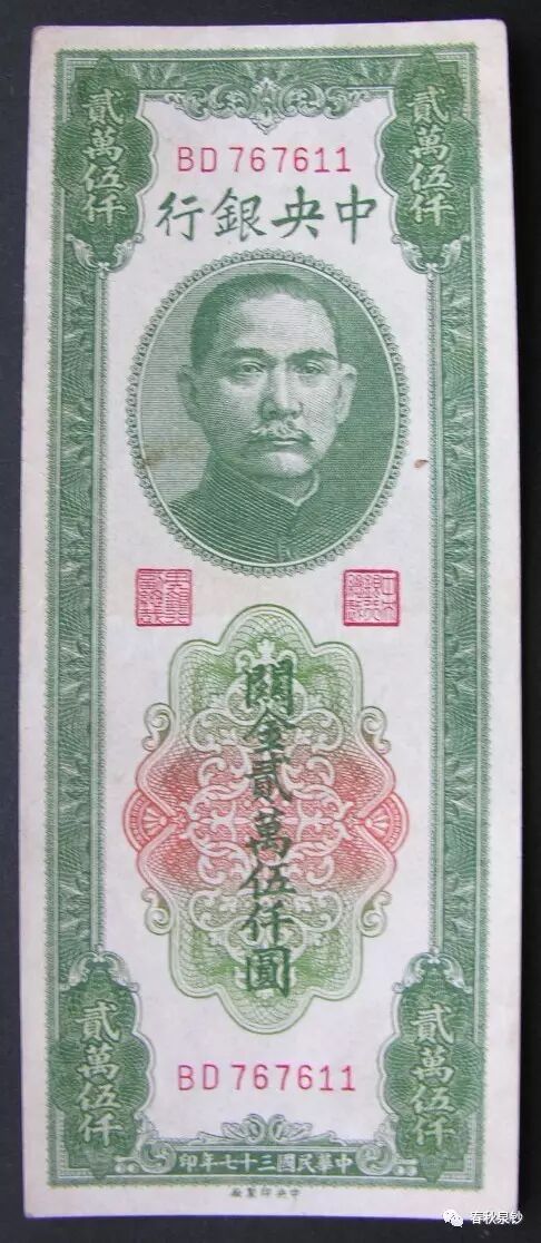 Lot6:中央银行关金贰万伍仟圆1枚,少见品种