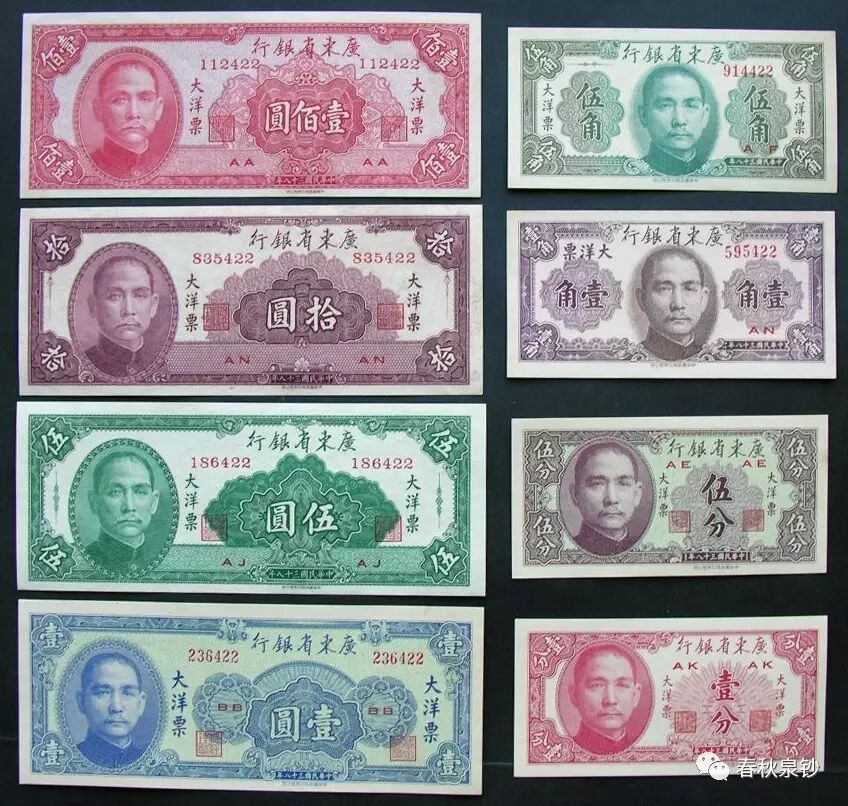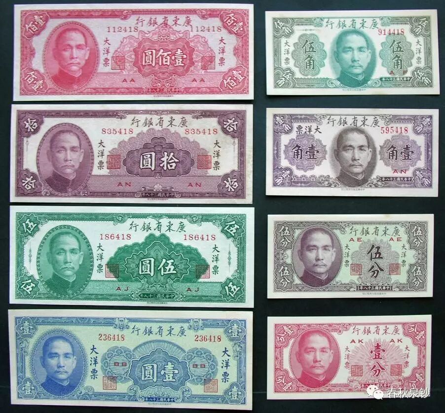 Lot20:广东省银行大洋票全套8枚,尾三同