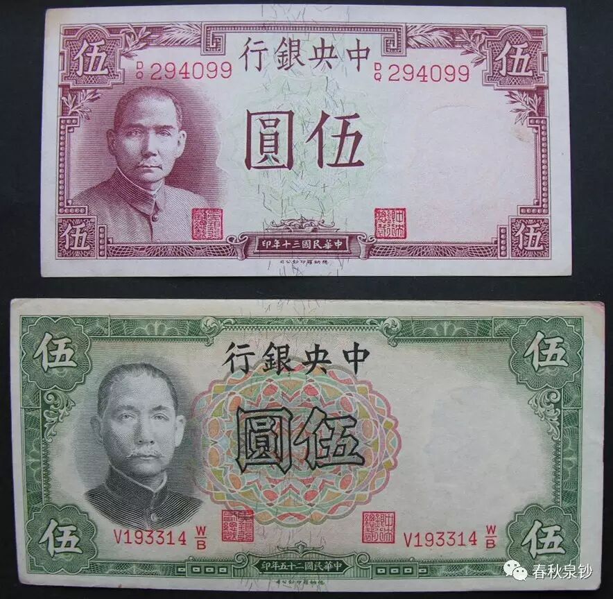 Lot3:中央银行伍圆,民国二十五年1枚、三十年1枚,德纳罗版