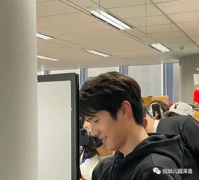 之后刘昊然随众人到线下“扫楼”,还对着工作栏一行仔细观摩,身后跟随的是工作人员和围观的群众,刘昊然作为当之无愧的主角,颇有种领导视察公司的feel。