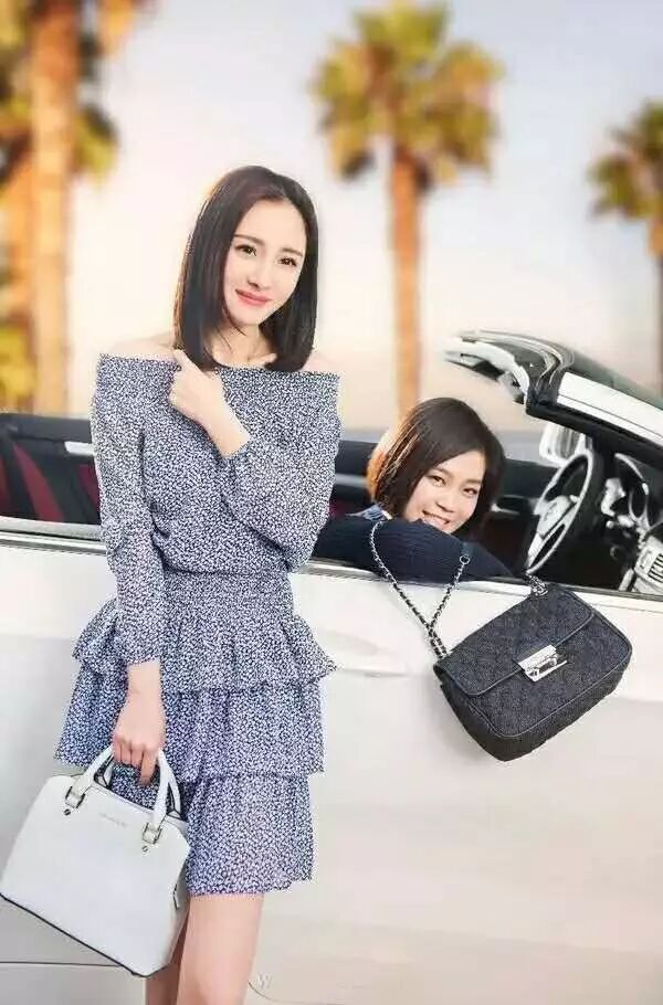 还有辣妈杨幂一件Michael Kors碎花一字肩连衣裙