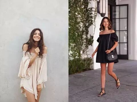而且一字肩更适合有锁骨平胸的美眉尝试哦