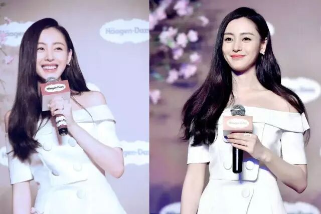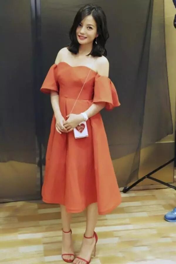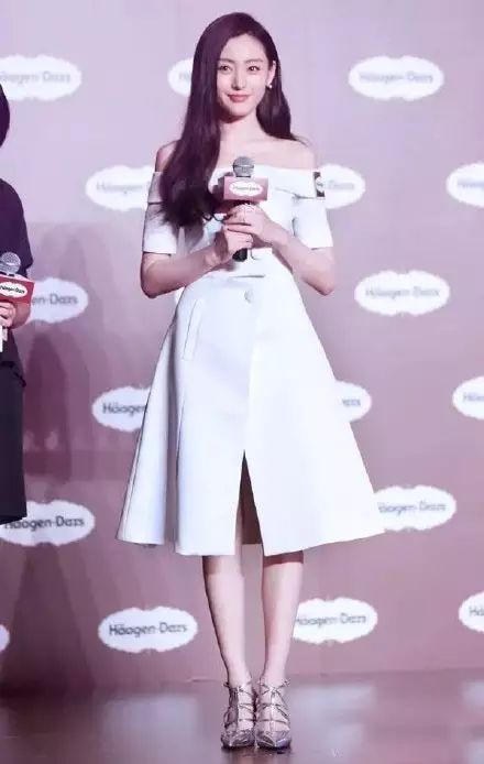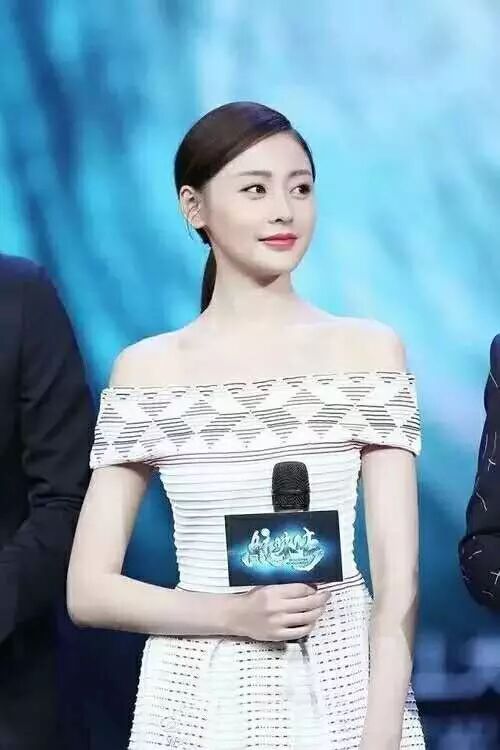 之前参加电影《鲛珠传》也是一字领刺绣连衣裙