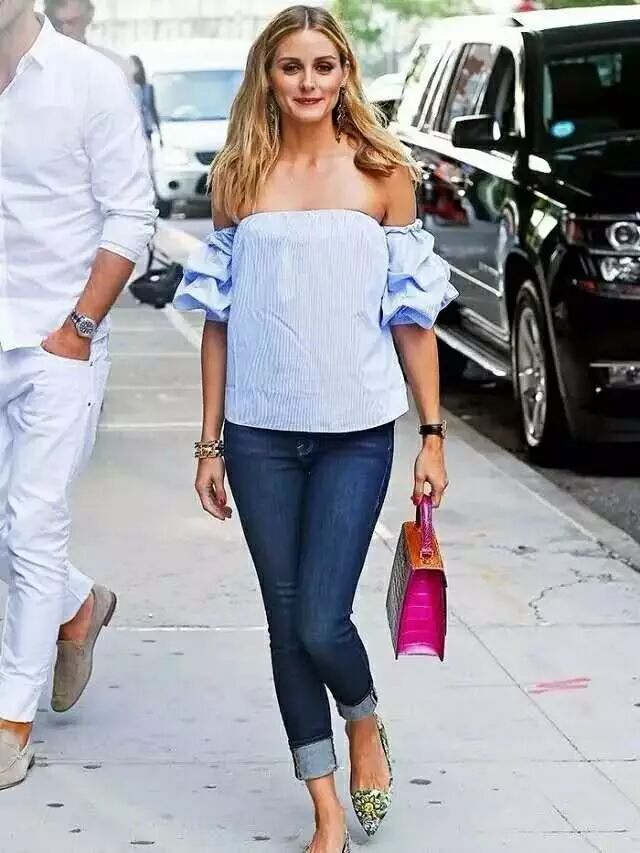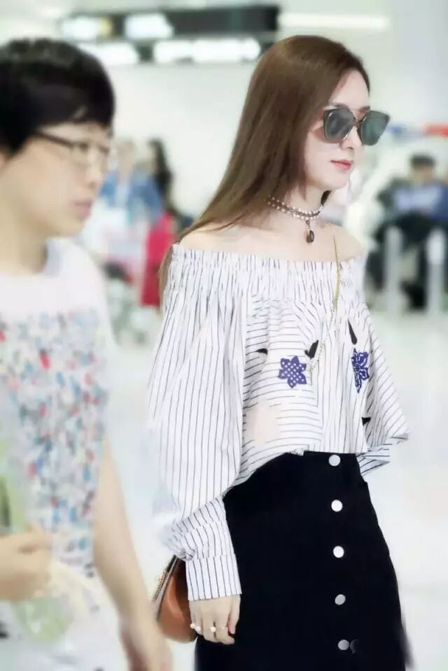 今年夏天,露出锁骨才最性感,看女明星的街拍,全部都被一字领承包了,这么夯的单品你确定你也有么?