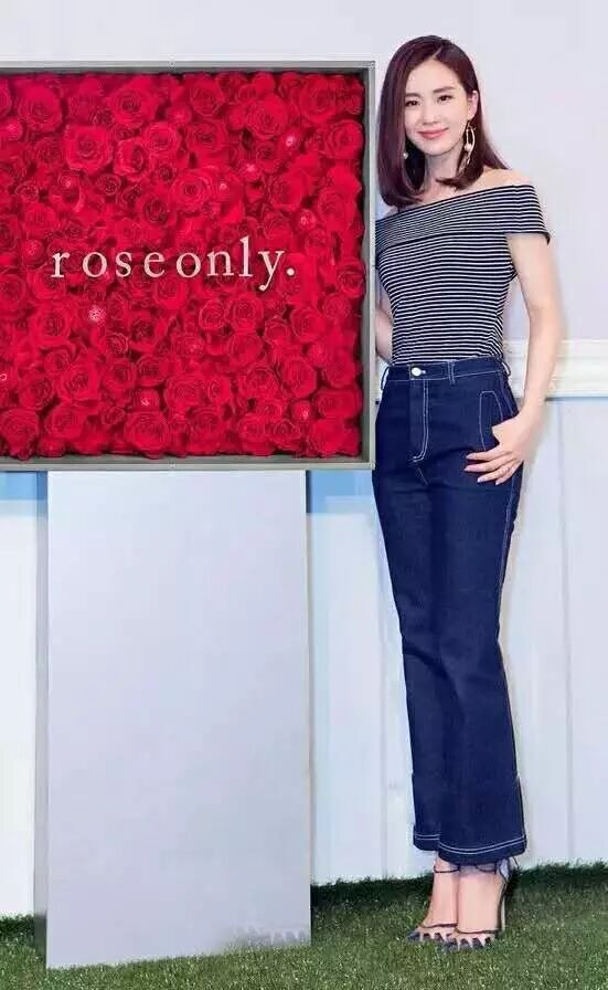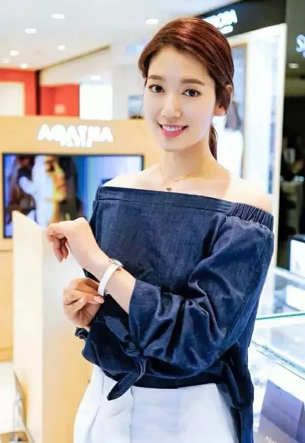 瘦下来的朴女神身穿韩国品牌VOV一字肩牛仔上衣