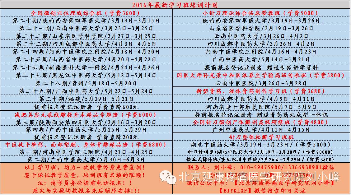 全国各地区省会城市不定期举办针刀、穴位埋线(疼痛 美容 减肥)、膏药等学习班;
