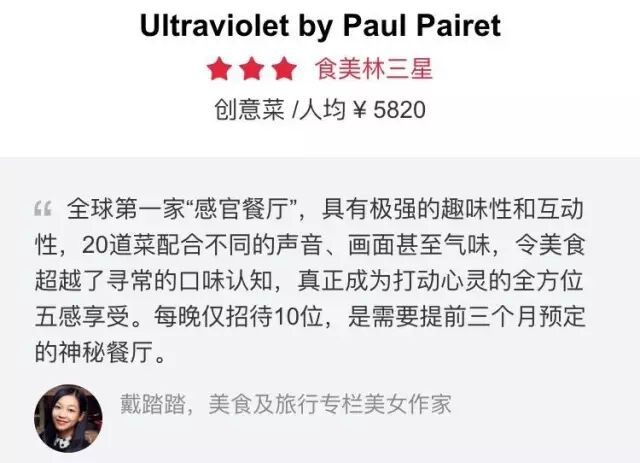 高端美食,饕客之选,价格不菲,屈指可数的顶尖餐厅。评一至三星:一星是能够给旅行带来惊喜的餐厅,二星是值得专程预约的餐厅,三星是一辈子总要去一次的餐厅。