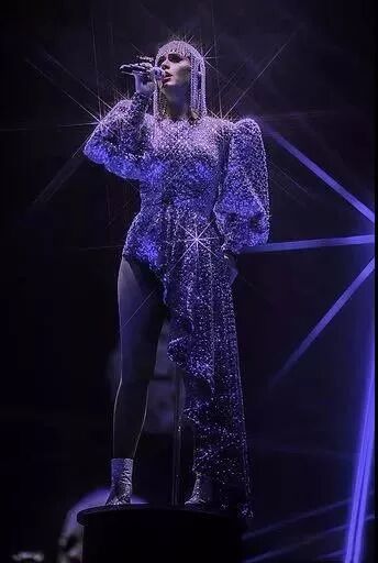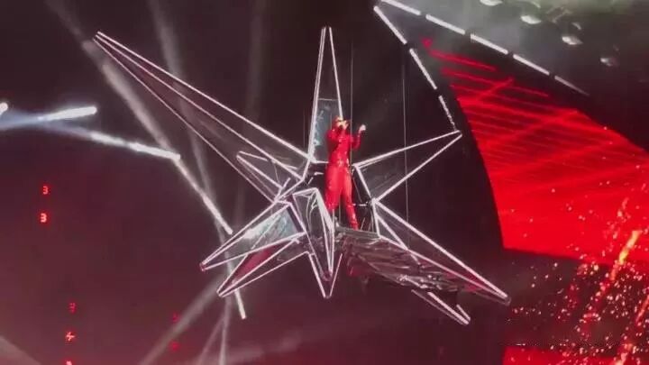 此次演唱会银河场景之一,八个星球和恒星的星系飘浮在观众的上方,而水果姐则跳上一块如同土星景象的装置,飘浮在整个舞台上。
