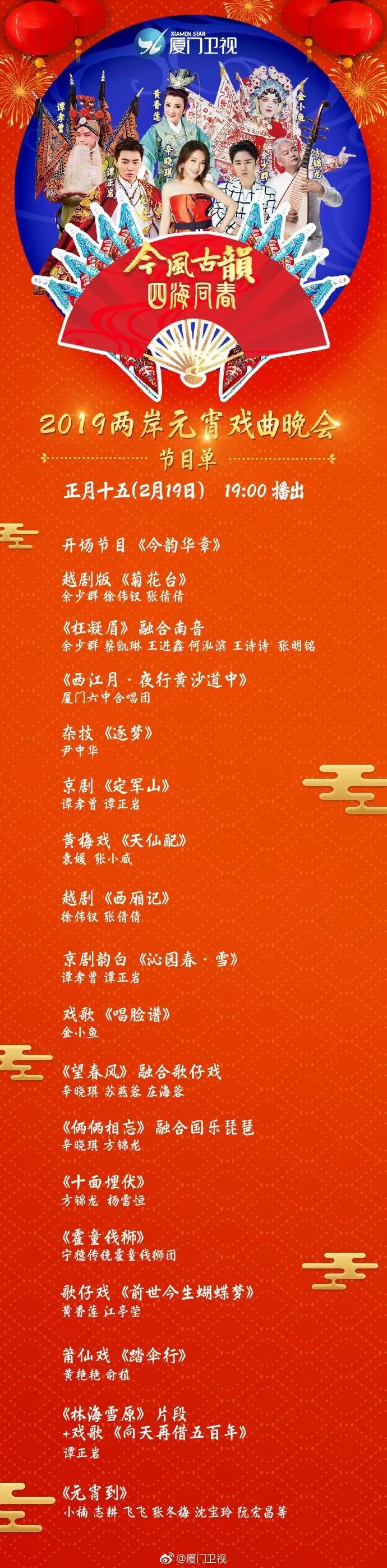 晚会名称 | 金风古韵、四海同春——2019两岸元宵戏曲晚会 |