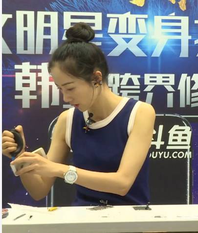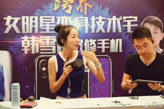 才不止唱歌表演,趁着苹果发布新款手机这个时间点,受到某个在线直播平台的邀请,韩雪去表演了一番修手机。