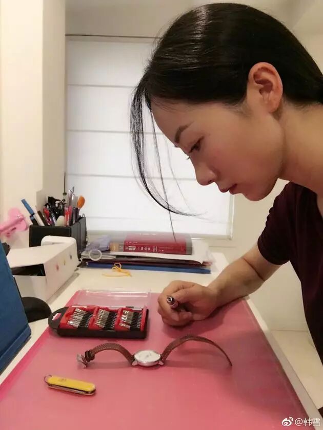 除了亲手修个苹果,前一阵,韩雪的手表电池没电了,也是她自己翻出工具,撬开换了电池。除了几乎万能的瑞士军刀,韩雪的工具真的挺齐备。动手能力超强。