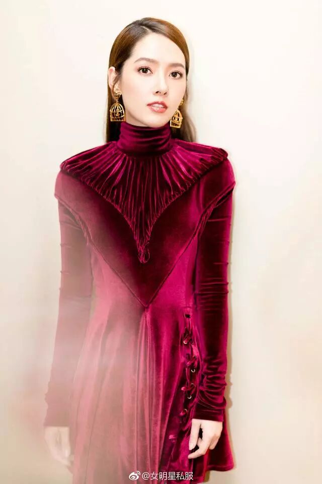 颜好腿长的郭碧婷选择穿丝绒单品也是勇气可嘉了吧,毕竟这种材质的衣服很难穿得好看,很容易就大妈气跑出来了。这件Y/Project酒红色丝绒绑带连衣裙还是高领的设计,把郭碧婷的脖子都穿没了,感觉有点怪呢。裙子设计倒是很好看,丝绒的光泽度也很有质感,但是搭配在一起就觉得哪里不对头。