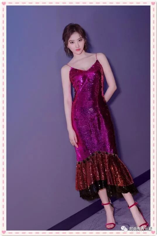 景甜在活动中一件玫红色的吊带长裙,裙子的设计显得身材很丰满。景甜的五官比较精致,这种发型非常考验脸型,景甜的脸型也是非常完美。