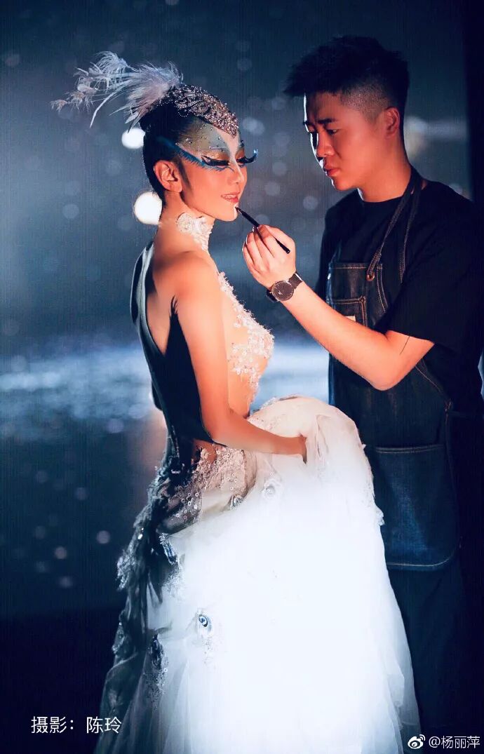 这是杨丽萍刚刚表演完,被摄影师捕捉下的一幕。