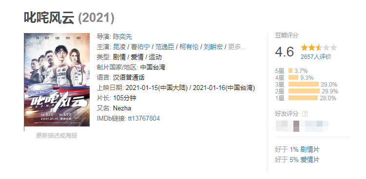 再一查豆瓣,影片果然非常“争气”,上映后迅速收获了4.6分的成绩: