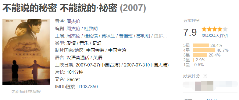2007年自编自导自演的电影《不能说的秘密》,应该也是不少人青春时期的回忆。