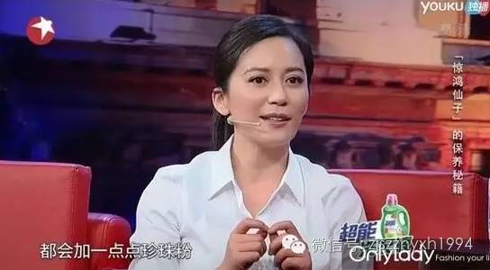有些人的肤质有些部分很油,有些部分又很干,这样的肤质很难打理,徐静蕾的就是这样的肤质,她透露自己喜欢用化妆棉蘸取充分冷冻过的珍珠水,在两腮进行5——10分钟的敷脸,之后会感觉水水的,润润的,肌肤特别有光泽和质感。徐静蕾还说她奶奶那时候就喜欢用珍珠粉了,呃,怪不得徐静蕾对一切有关珍珠的都情有独钟。