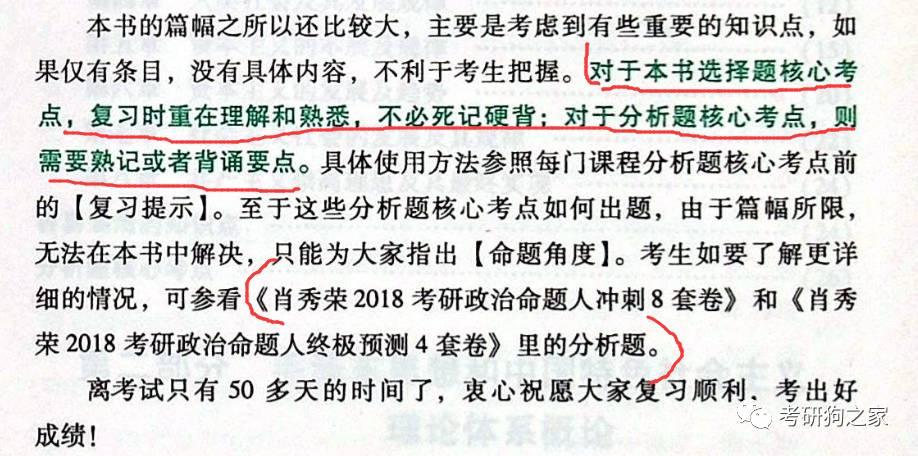 对于考点预测这本书的使用,肖秀荣老师建议大家选择题考点要理解和熟悉,而分析题考点需要背诵,更加精确到预测会在后面出版的八套卷及四套卷中呈现,后续内容请关注微信公众号【考研狗之家】,会带来最新的考研资讯。