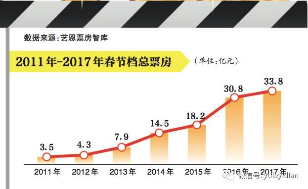 根据国家电影资金办官网数据显示,今年除夕到大年初六(1月27日至2月2日)这7天春节假期,内地电影总票房达33.8亿元,超过去年同期30.8亿元的成绩,增幅为9%。与此同时,大年初一单日票房达7.91亿,创下了中国影史上单日票房新高。
