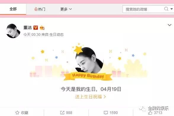 4月19日是董洁的生日,就在今天有不少网友通过各种方式送上了自己的祝福。