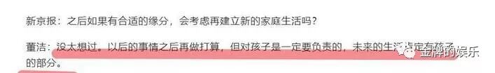 由以上也可以看的出来,对于感情董洁并没有说死,但是她的经纪人陈山石貌似就不这么看了。之前他还发文称,如果想看儿子顶顶,那么要等潘粤明有时间。结果发文后就被潘粤明的粉丝打脸,因为只要看儿子潘粤明什么时间都能抽的出来。