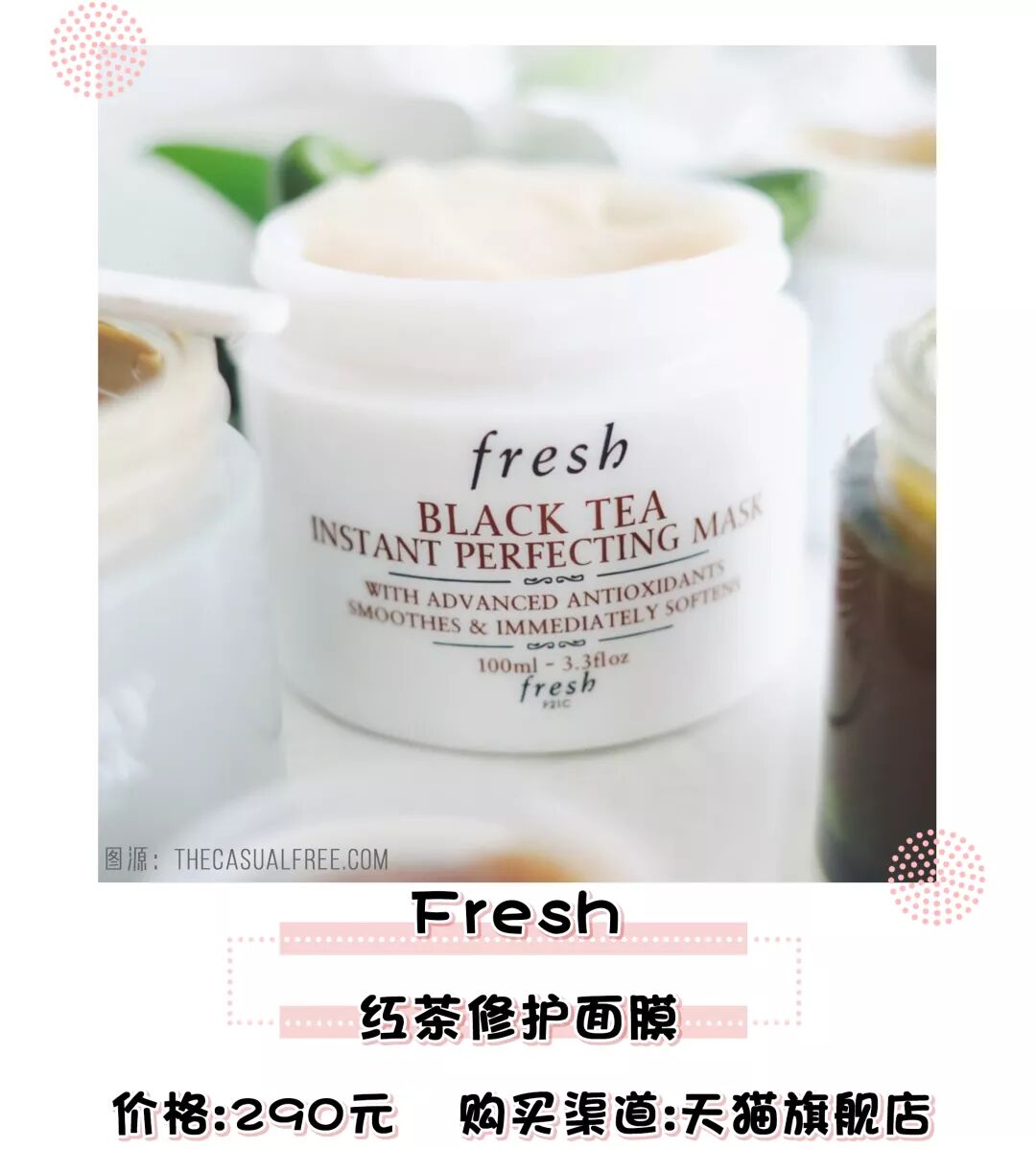 Fresh的红茶面膜能提亮美白、补水保湿和镇定修护。独特的土豆泥质地,上脸真的超舒服,使用感满昏推荐!