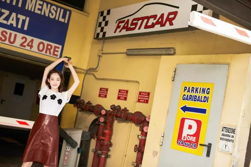 (蒋梦婕出席MARYLING的米兰时装大秀,一身利落休闲装)