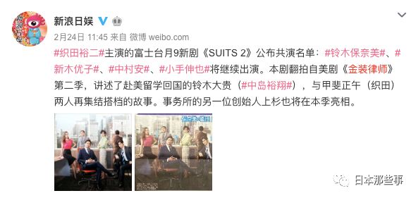 织田裕二的《金装律师》也推出续作,中岛裕翔、铃木保奈美、新木优子、中村安等也都悉数回归,这次的续集还将刷新月9史上最长集数