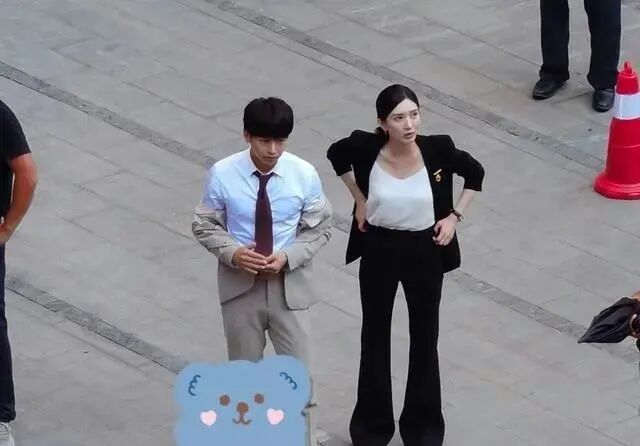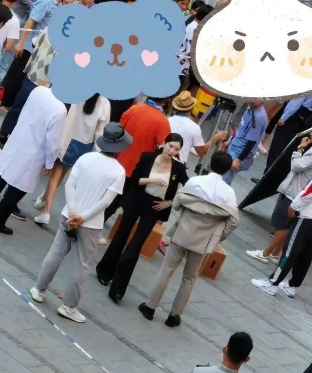 现身拍戏现场的江疏影,在网友的镜头下,身着一件黑色的西装外套,垫肩式的传统款式,虽然有点简单,可是穿在女神身上那气质真是绝了,妥妥女一号的气场,叉腰摆pose,太有范了。