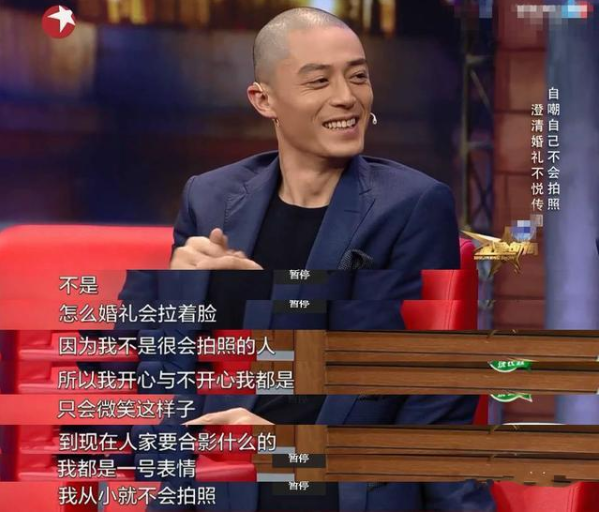 霍建华做客《金星秀》时谈及逼婚质疑,解释说是因为自己不会拍照,所以开心不开心都是一个表情~