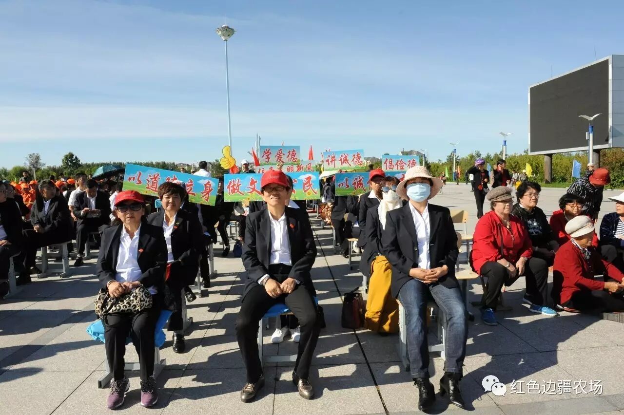红色边疆农场场长时厥祥、党委书记秦玉国、党委委员武装部长何纯亮、副场长富德军、副场长李占端出席本次活动。领导与近千名职工群众一起走进爱与感动的海洋,共享精神盛宴,感受道德的力量。