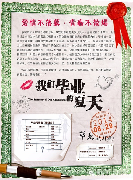 表演系才子张冲(吴建飞 饰)默默暗恋校花美女小夏天(张嘉倪 饰)十数年,但苦于其是自己发小兄弟蓝凯(张迪 饰)的女朋友而只能将真爱深藏内心。毕业前一天,蓝凯找到张冲,神秘地要其帮忙想个说辞:告诉小夏天他要分手!原因是他在彩排莎士比亚戏剧时跟扮演“奶妈”的女汉子好上了,对小夏已经审美疲劳!气愤异常又不知如何说出苦衷的张冲一时间左右为难,而一众临将毕业的哥们、闺蜜们各出奇招,粉墨登场!以精分系歌神郝飞(大张伟 饰)、校园资方大BOSS(曾江 饰)、播音系文艺男(青鸟飞鱼 饰)、网虫超级萌爸(洪剑涛 饰)等为代表,各种忙碌的同学、老师和家长,在毕业前阴差阳错地交织在一起。