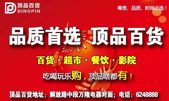 关注顶品百货官方微信,一手掌握顶品百货、顶品超市、奥斯卡影城、万隆电器等最新优惠信息,还可查看影讯,团购影票,体验好玩的游戏等,并有不定时的福利相送哦。惊喜多多,等你来发现!