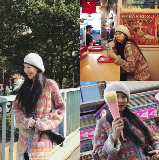 和金晓钟一起约会逛街的金泫雅,俨然一副恋爱中小女人的模样,时而调皮地拿着食物合照,时而开怀大笑,看起来非常可爱,和她在舞台上的性感模样简直判若两人。