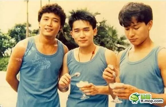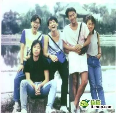 那位反拿着羽毛球拍当吉他的便是家驹了。