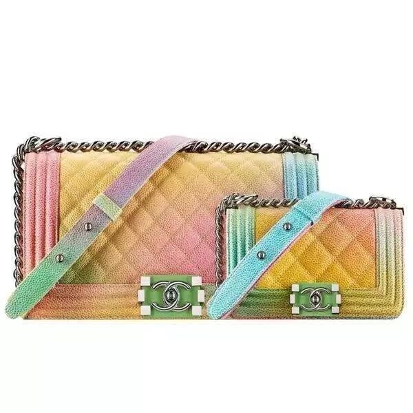受到今年的彩虹趋势影响,众多新款包包也变了花样。常年黑白为主的香奶奶今年竟然出了个粉嫩的马卡龙彩虹色,满满的少女心。Loewe的Puzzle系列也不甘落后,既去年彩虹配色小象包之后,今年也出了一款彩虹Puzzle,手柄位置还特别用皮质包裹。
