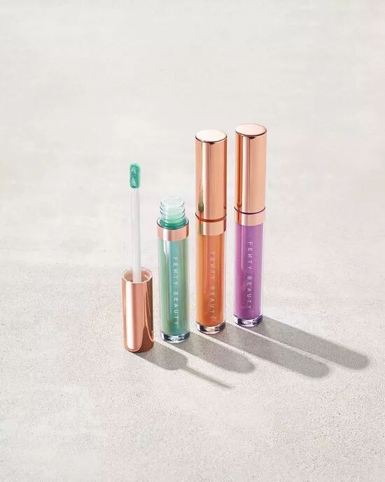 当然你也可以有更简单的方式拥有彩虹元素。Rihanna的美妆品牌Fenty Beauty最近推出了超多人鱼配色,这款唇釉自带闪光效果,配合眼影盘太适合Drama Queen!