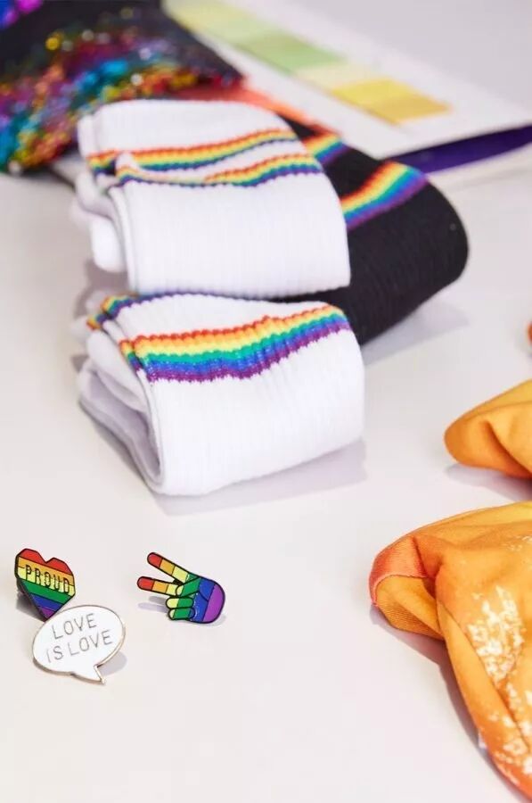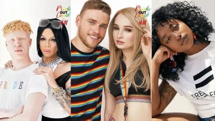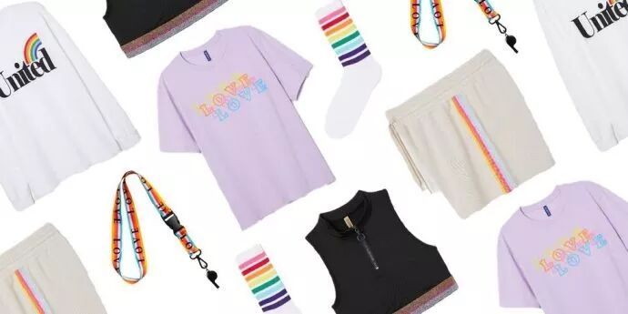 H&M借着今年的风头也放了大招,推出了“Love For All”系列单品,彰显品牌对于LGBT群体的支持。今年首次推出的同志主题系列主要以彩虹色调为设计主导,单品包含T恤、夹克、袜子、棒球帽等,单品还印有Pride、United、Equality等宣扬爱与和平的文字,品牌表示该系列10%的收益将捐赠给同志公益项目。