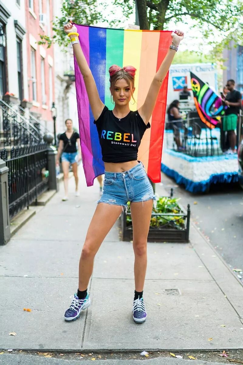 丹麦超模Josephine Skriver也参加了这次游行,她同时拥有一对les母亲和一对gay爸爸,生长在这样的家庭中令她对同志群体有着特殊的情感。