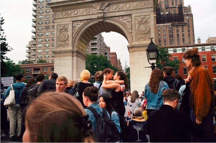各种LGBT社群以及支持者相拥在曼哈顿街头一同庆祝,其中还包括著名歌手Lady Gaga、丹麦超模Josephine Skriver,还有演员Victoria Justice助阵。